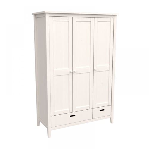Шкаф трехстворчатый Сиело 77319 изготовлен на белорусской мебельной фабрике "ММЦ" из натурального массива сосны, и окрашен экологически чистым красителем на водной основе в благородном цвете "Белый воск". Структура дерева просматривается довольно слабо. Модель выполнена в простом лаконичном стиле, без наличия декора. Конструкция системы хранения данного изделия представляет собой одно двустворчатое отделение с распашными дверками, оснащенное шляпной полкой и двумя продольными штангами для плечиков, одно одностворчатое отделение с тремя полками для одежды, и два выдвижных ящика, расположенных у основания модуля. Удобен и вместителен, прекрасно дополнит интерьер детской комнаты.